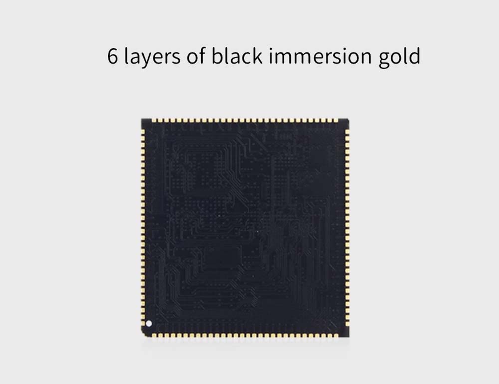 ● Adopting stamp hole interface design, the board is only 40*40mm in size, small and exquisite, with 6 layers of black immersion gold. In addition to DDR, EMMC bus, LRADC, I0 is fully led out