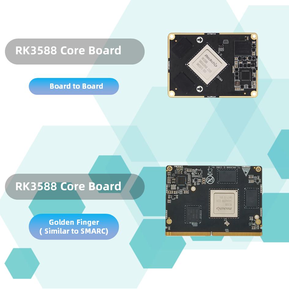 Thinkcore has developed 2 different core boards. They are RK3588 SOM ( Board to board) and RK3588 SOM ( golden finger)