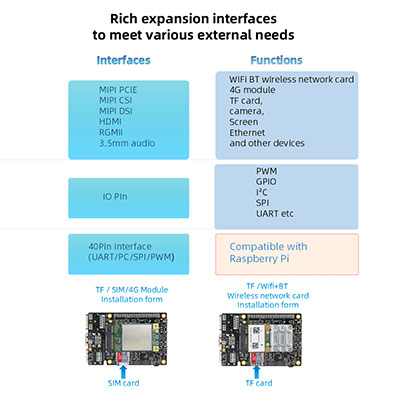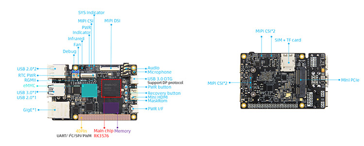 Onboard Gigabit Ethernet port, RGMII, USB3.0/2.0, Mini PCle, Mini HDMI, MIPI screen and MIPI camera and other peripheral interfaces, leading out 40Pin unused pins, rich expansion interfaces to meet more development needs!